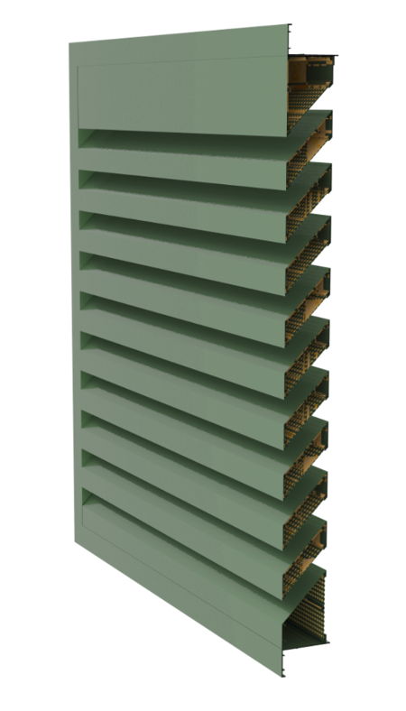 Single blade acoustic louvers combine ventilation performance with noise reduction. Their specialized blade profile absorbs and deflects sound while allowing free airflow, making them suitable for mechanical rooms, plant rooms, and industrial facilities.